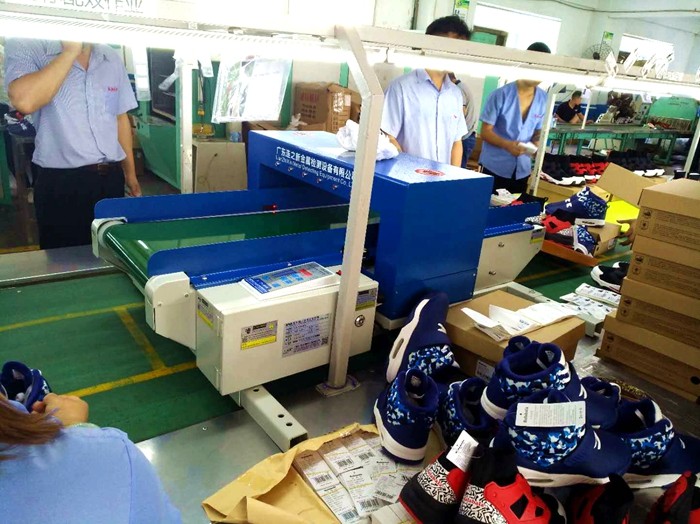 鞋厂入库前检针机使用现场