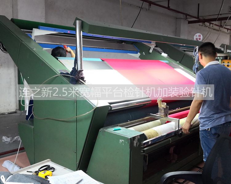 广东某天纺织企业,是一家老牌大型港资布匹生产企业,出于提升客户满意度和品牌形象的需求,选购连之新6台2.5米宽幅平台式检针机,用于加装在该工厂现有的6台老式验布机上进行产品质量控制。当天即检出多枚断针。