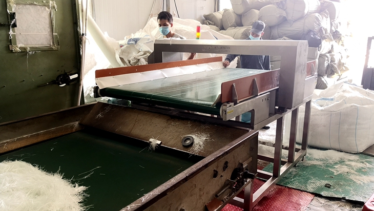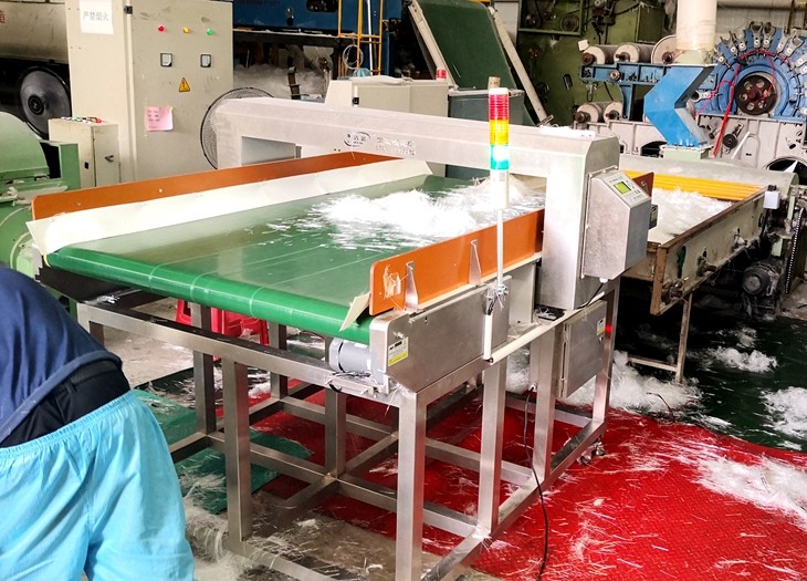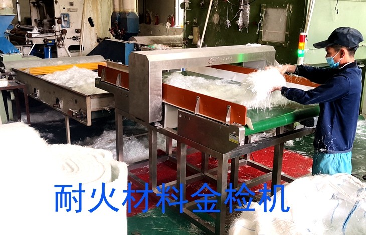 由于玻纤原料中有可能会混入金属螺母螺丝铁块铁丝等异物,会导致下游设备损坏,因此由我连之新公司提供金属检测机定制。用于检测材料中散落的金属异物。