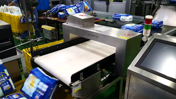 以下为汉氏卫生用品纸尿裤生产线使用连之新金属检测机的部分现场: