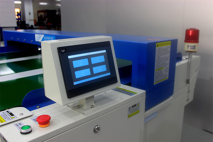 过检针:五金钮扣、五金拉链、日字扣、珠链、胸针等服装手袋金属辅料过检针机。