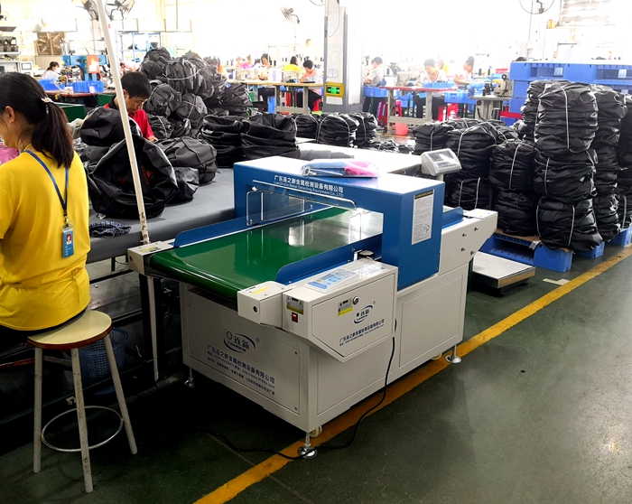 过检针:五金钮扣、五金拉链、日字扣、珠链、胸针等服装手袋金属辅料过检针机。